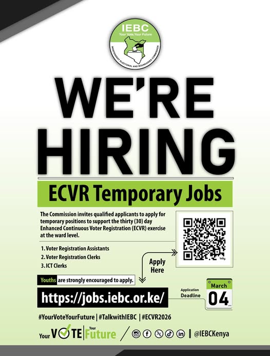 By joining the ECVR exercise, successful applicants contribute directly to safeguarding Kenya’s democratic process while gaining valuable professional experience.